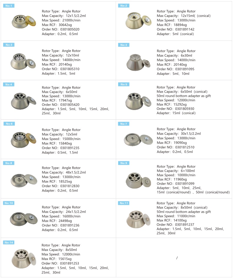 3. 多達19款轉子,既可高速離心,也可大容量離心。滿足多樣化實驗需求,一機多用
